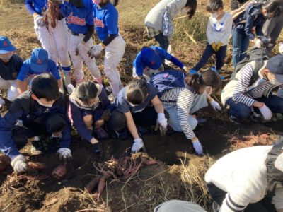 爽やかな秋晴れの下、子ども会主催の『芋掘り』に参加しました。